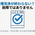 泡消し運転が始まると、通常のコース時間より1〜2時間長引くことも珍しくありません。「水が入り続けている=故障」と決めつけず、泡の状況を確認してみてください。