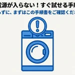 まずは深呼吸して落ち着き、コンセントの抜けやタコ足配線の影響、ご家庭のブレーカー、そしてドアの挟まりやチャイルドロックといった安全装置の作動がないかを一つずつ確認してください。そして、プラグを完全に抜いて「5分間しっかり待つ」放電リセットを試してみましょう。